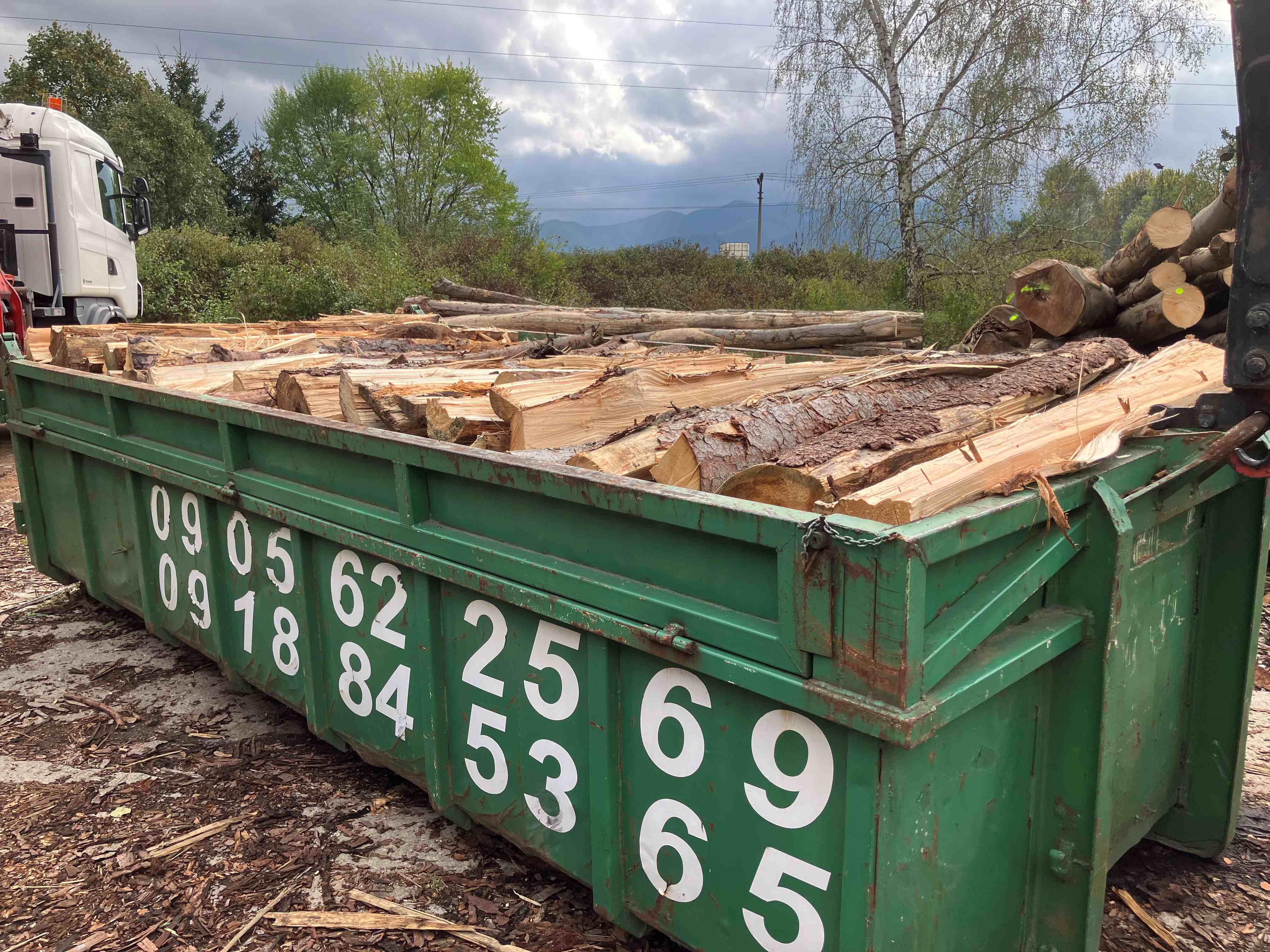Hotové (napílené, naštiepané na mieru v kontajneri) .......... 704 EUR / 11,5 spm